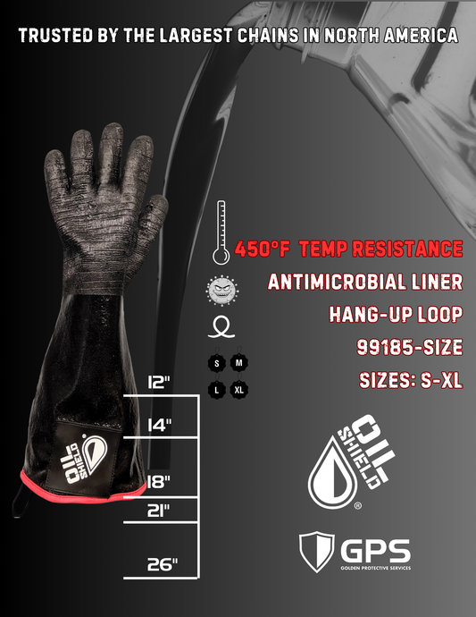 Oil Shield®, 18" High Temp Insulated Neoprene Gloves - Men's Sizes S-XL