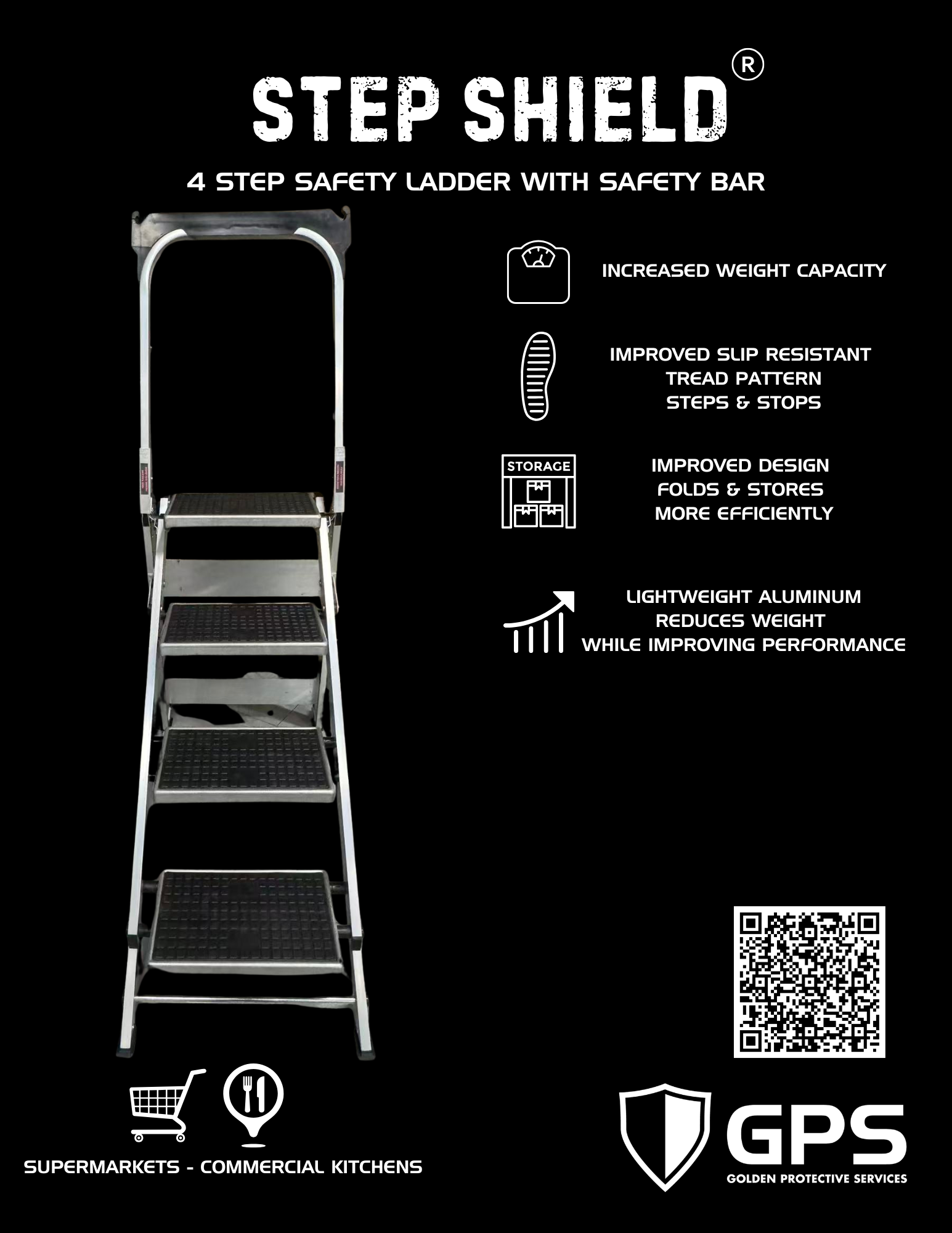 Step Shield 4 Step Safety Ladder with Safety Bar
